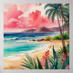 Eine friedliche tropische Küste, an der der goldene Sand auf die sanften türkisblauen Wellen trifft. Unter einem traumhaft rosa und aquamarinen Sonnenuntergang schlängeln sich üppige Palmen. Die perfekte Flucht für diejenigen, die den Strand und die Meeresbrise Liebe.