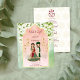 Sangeet mehndi indischen Hochzeitsplanung Einladung Vorlage. Niedliches indisches Brautpaar in Hochzeitskleidung grün und maronen, Jasmingarland, grün und rosa Hintergrund.