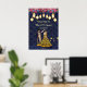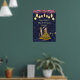 Sangeet willkommen beim Schild Tanzen indisches Paar mit marokkanischen Laternen, bordeauxfarbene Blume auf dunkelblauem Hintergrund. Kann auch für den Empfang verwendet werden.