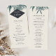 Notre programme de mariage tropical vintage comprend vos détails de cérémonie en lettrage noir moderne, accentué avec des illustrations vintages gravées en fronde de palmier vert, et vos noms affichés sur un élément géométrique gris charbon. Reverse side liste les membres de votre mariage avec des champs de texte facilement modifiables. Coordonné avec notre collection de faire-part de mariage Sanibel pour des mariages vintages et élégants. Utilisez les champs modèle pour ajouter les informations de cérémonie et de fête de mariage, puis cliquez sur "Customiser" pour repositionner les éléments si nécessaire. Besoin d'aide ? Contactez-moi via le lien "Demandez à ce concepteur" sur cette page.