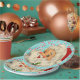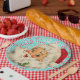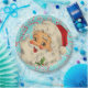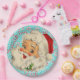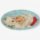 Süßer Vintager Sankt-Entwurf von einem lustigen Weihnachtsmann gegen einen Türkishintergrund mit Pfefferminzen und Zuckerstangen.