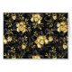 Motif sans couture avec orchidées en noir et or, richement décoré avec des rameaux d'eucalyptus noirs et des brindilles délicates à bijoux pistaches sur arrière - plan noir. Orchidée de bijoux en or.