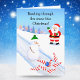 This whimsical Christmas design showcases Santa Claus cheering as a joyful snowman scores a strike on his frosty bowling lane. This is a perfect Christmas card for bowlers.