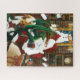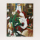 Santa mit einem jungen grünen Drachen auf seinem Schoß. In der Höhle des Weihnachtsmannes gibt es eine Tüte Spielzeug, Gänseleber, weiße Einhorn und zwei Katzen in Bücherregalen. Hinter dem Hotel befindet sich ein Kamin, Bücherregale mit Büchern und Wandteppichen eines Schneemanns