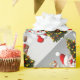 Santa claus and reindeer behind a christmas tree.j geschenkpapier