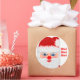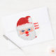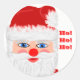 Weihnachtskleber. Jolly Santa Claus mit blauen Augen, rosa rosa rosa Wangen, große rote Nase, grauer Bart, festliche Furry rot und weiß Kappe mit Pom-Pom. Mit der Formulierung, Ho! Ho! Ho! geschrieben in rotem Text. Original Artwork von TamiraZDesign.