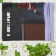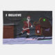 Glaubst du an den Weihnachtsmann? Der Weihnachtsmann steht auf dem Dach eines Hauses, nachdem er Geschenke geliefert hat. Es erscheint auch der Text mit dem Text "I GLAUBE".