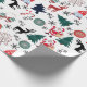 Santa Claus Reindeer Pine Trees Mittens Muster Wrapping Paper