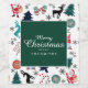 Das Weinetikett dieses Ferienhauses zeichnet sich durch den Weihnachtsmann, die Rentiere, die Pinienbäume, die Mitten und die Schneeflocken auf weißem Hintergrund aus. Die Typografie "Frohe Weihnachten" ist in Weiß. Sie können den Gruß und den Namen personalisieren.