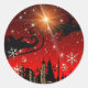 Santa Claus Reindeer und Sleigh Flying Runder Aufkleber