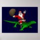 Santa Claus Riding Green Lizard Poster