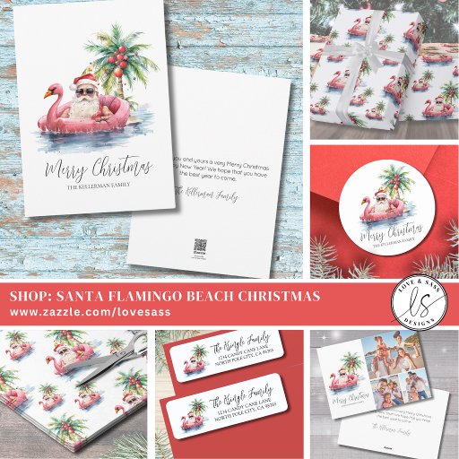 Mit dieser einzigartigen, gefalteten Weihnachtskarte mit einem entspannten Weihnachtsmann in einer Sonnenbrille, die in einem rosa Flamingo im Ozean schweben, erleben Sie den Urlaubssinn. Diese Karte eignet sich ideal, um Urlaubswünsche an den Stränden zu senden. Sie ist ideal für jeden, der in tropischen Orten wie Florida, Hawaii oder den Bahamas lebt - oder für jeden, der einfach nur ein Küstenvibe Liebe. An der Vorderseite befindet sich eine reizende, rustikale Aquarelllandschaft mit dem Santa, eine Palme mit Ziergegenständen, sanften Ozeanwellen und eine kleine Insel in der Ferne. Das Design verbindet einfache Schriftart mit Skripttypografie für ein lässiges und dennoch elegantes Ambiente. Im Inneren ist Platz für Ihre Urlaubsbotschaft vorhanden, ob gedruckt oder handschriftlich, sodass Sie flexibel auf Ihre Wünsche eingehen können. Ein lustiger und fröhlicher Weg, um Ihren Weihnachtsgrüße ein wenig Surfen und Sand hinzuzufügen. Erhältlich als bedruckte Faltkarte oder als digitaler Download zum Drucken oder Senden per E-Mail.