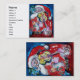 Farbenfrohe, skurrile und künstlerische Acrylmalerei ,Der Weihnachtsmann spielt in der schneebedeckten Winternacht Geige, eine Eule, Blumenschmuck, Winterfrüchte, heilige Beeren in kräftigen Rot-, Grün-, Weiß-, Blau- und Gelbtönen.