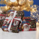 Wrapping-Papier mit einem nach oben nahen Bild des Weihnachtsmanns, der lächelt und winkt, während er vor einem Weihnachtsbaum sitzt. Dieses Design wurde von Debbie Quick aus Debs Creative Images erstellt: www.debscreativeimages.com