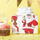 Weihnachtsmann mit einer Bierflasche und Happy Holidays Text auf einem Etikett auf weißem Hintergrund. Die Hintergrundfarbe kann geändert werden.