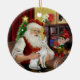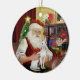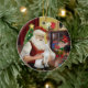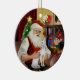 Der Weihnachtsmann entspannt sich vor einem gemütlichen Feuer mit seiner Devonshire Rex Katze vor der großen Nacht.
