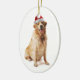 Weihnachten geht nicht mit diesem fröhlichen Ornament an die Hunde. Ein freundlicher Goldener Retriever trägt eine Weihnachtsmannmütze, sich im Weihnachtsgeist zu erfrischen. Bearbeiten Sie die Nachricht auf der Rückseite nach Bedarf. Verfügbar mit passenden Produkten.