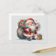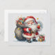 Der Weihnachtsmann wird mit einem großen Sack mit Geschenken dargestellt, umgeben von farbenfrohen Geschenken und dekorativen Sternen. Sein fröhlicher Ausdruck und sein traditionelles rotes Outfit vermitteln einen festlichen Urlaubssgeist.