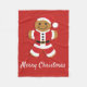 Fleece Blanket mit einem lächelnden Lebkuchen Weihnachtsmann und den Worten "Frohe Weihnachten". Die Wörter können nach Belieben angepasst werden. Frohe Weihnachten!