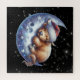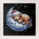 Bringen Sie den Zauber eines Hochland-Weihnachts auf Ihre Zuhause mit dieser charmanten schottischen Highland-Kuh, gemütlich als Weihnachtsmann gekleidet, friedlich auf dem Halbmond schlafend.