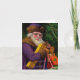 Diese Karte ist eine von einer Serie, die die fröhlichen Mitmenschen zeigt, die Geschenke und Weihnachtsjubeln liefern. Sein stilistischer Hut und sein Gewand sind mit Fell und Flecht dekoriert. Das Originalbild zeigt reiche und elegante Farben. Es ist ein perfektes Design für Urlaubskorrespondenz und dekorative Gegenstände.