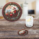 Mit diesem Santa in Sleigh Round Paper Untersetzer können Sie Ihren Tisch mit festlichem Feiertagssjubeln verwöhnen. Mit seinem Schlitten voller Geschenke und einem klassischen Design des Weihnachtsmannes eignet sich dieser Untersetzer hervorragend für Weihnachts-Party, Familienessen und Ansammlungen im Winter. Schützt Ihre Oberflächen und bringt Ihnen fröhlichen Weihnachtsgeist in Ihre Getränke und Dekoration. Dies ist ein digital bearbeitetes KI-Design.