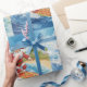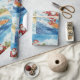 Wrap your gifts with sunshine and surf! This modern watercolor wrapping paper features Santa Claus surfing on turquoise waves in a red surf suit with a Christmas-themed surfboard decorated with candy-cane stripes, holly, and stars.