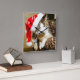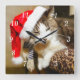 Santa Kitty Painterly Wall Clock Quadratische Wanduhr