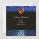 SANTA MIT VIOLIN, BLUE BLACK DAMASK MONOGRAMM Ruby Einladung