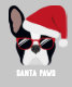 Santa Paws est comin' to town ! This black and white french bulldog is ready for the Christmas holidays wearing a red Santa hat and of course, not forgetting the stylish sungtlass too.