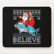 Santa Riding Shark Ugly Christmas Sweater Believe Mousepad