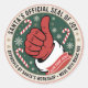 Spread holiday cheer with this Santa’s Official Seal of Joy sticker. Designed as a circular stamp, it features Santa’s gloved hand giving a cheerful thumbs‑up, surrounded by candy canes and snowflakes for a festive touch.