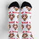 Suchen Sie lustige Weihnachtssocken? Diese Weihnachtssocken zeigen ein Muster des Weihnachtsmannes und Rentiers, die unter einem roten Banner eine lustige Pose erwecken. Auf dem Banner steht Santa Squad.