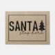 Santa Stopp hier mit Weihnachtsbaum Doormat. Imitate begraben Leinwand Textur Hintergrund.
