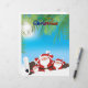 Niedliche Santas auf der Suche nach einem warmen und weißen Weihnachtsfest.