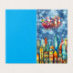 Der Weihnachtsmann fährt einen Schlitten, der von zwei Rentieren gezogen wird und sich über eine pulsierende, skurrile Stadt mit farbenfrohen Gebäude erhebt. Der Nachthimmel ist voll von Schneeflocken und Sternen und schafft eine magische, festliche Atmosphäre. Digitale Kunstfotografie CS5