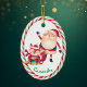 Auf diesem niedlichen Ornament hallt Santa Wellen, während ein kleiner roter Fuchs das Geschenk hält, das er gerade erhalten hat. Unter dem Bild befindet sich der spezielle Name Ihres Kindes in grün. Das Bild ist gerahmt mit einem hübschen, roten, grünen und weißen, kantigen Streifen. Auf der Rückseite des Ornaments befindet sich der gleiche gestreifte Rahmen, und es gibt mehr Textfelder, die Sie anpassen können. Ideal für Großeltern oder Eltern, um einem kleinen etwas zu geben.