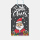 Erleben Sie den festlichen Geist mit diesem verspielten Geschenkschild, das den Weihnachtsmann und seine geschäftigen Elfen zeigt. Die fröhlichen Farben und die fröhliche Bildsprache bringen die Freude und Spannung der Weihnachtsvorbereitungen zum Leben.
