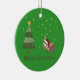 Niedliche Yak mit einer Weihnachtsmannmütze in einer sternenreichen Nacht neben einem Weihnachtsbaum. Frohe Weihnachten