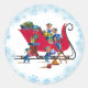 SANTA'S SLEIGH & ELVES by SHARON SHARPE Runder Aufkleber