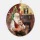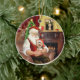 Der Weihnachtsmann entspannt sich vor einem gemütlichen Kamin mit seinem Yorkshire Terrier in einer Weihnachtsmannmütze vor der großen Nacht. Mona Lisa hängt über dem Mantel.