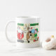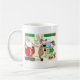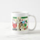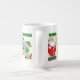 Cartooncharakter Sankt, cooleren Klatsch des Wassers zwischen seinem Ren und Elf in seiner Werkstatt beobachtend. Genießen Sie Ihr Lieblingsyuletide Getränk mit dieser themed Kaffee-Tasse des niedlichen und humorvollen Feiertags und die ursprüngliche Cartooncharakterkunst von Marty Qatani kennzeichnen