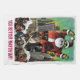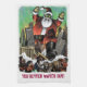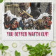Illustration von einem riesigen Weihnachtsmann, der eine Stadt terrorisiert