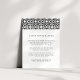 Conçue pour coordonner avec notre collection de mariages de Santorin en noir, cette élégante carte d'information d'hôtes méditerranéenne présente du lettrage noir éclatant accentué d'une bordure supérieure à motif géométrique en noir et blanc. Remplacez l'exemple de texte par les détails clés de votre célébration mariage. Vous vous demandez quelles informations inclure sur un encart faire-part de mariage ? Prenez en compte des détails comme l'hébergement à l'hôtel, les codes de groupe, le transport, l'itinéraire, les informations sur la réception de bienvenue et votre URL du site Web mariage. Vous pouvez même télécharger une carte vers l'envers à l'aide de la fonction personnaliser it. Vous avez besoin d'aide pour le libellé ou la mise en forme? J'adorerais aider ! Contactez Kristen via le lien "contacter ce designer".