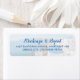 Santorini Greece Shoreline Skyline Return Address Label with the famous blue dome church and Agean sea cliffs as a faded background with elegant and modern script fonts, perfect for Greek Destination Wedding Invitations and Save the Dates.