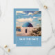 Das ist ein handgemälde aus Plexiglas von Santorin Griechenland für einen Save the Date. Dieses moderne und schlichte Design mit hellblauem Hintergrund eignet sich perfekt für die Hochzeit in Urlaubsort in Griechenland. Ideal für diejenigen, die den Strand, die Blume, die Kunst und die Architektur Liebe. Passen Sie Ihre Hochzeitsinformationen an und personalisieren Sie sie.