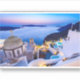Schöner Aufkleber mit schönem Sonnenuntergang in Santorini Griechenland.