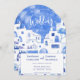 Ein modernes Aquarellbild der malerischen Stadt Oia auf der griechischen Insel Santorin, um Ihre Liebe mit einer Touch von Eleganz und Schönheit zu feiern. Inspiriert durch die atemberaubenden Ausblicke der Insel, bieten diese Einladungen ein faszinierendes Aquarellbild von Oia in traumhaften Blau- und Weißtönen. Ideal für eine Hochzeit in Urlaubsort, diese wunderschönen Einladungen werden den Ton für Ihren besonderen Tag Set geben und dafür sorgen, dass Ihre Gäste die Tage auf Ihre unvergessliche Feier in Griechenland zählen. Originelle Kunst von Nic Squirrell.