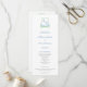 Ce programme de mariage classique présente une crête botanique d'aquarelle intemporelle en vert sève et bleu moyen.