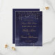 Umgekehrt in Saphir und Gold, eine minimalistische Einladung in tiefmarineblau Aquarell mit klassischer englischer Schriftzeichen Kalligraphie, die durch Glanz schimmernden Goldes entfacht wird.